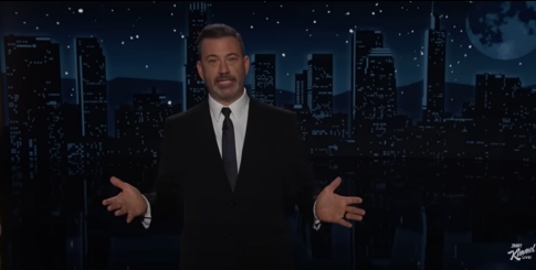 图为当地时间15日,吉米·坎摩尔主持《吉米·坎摩尔直播秀》画面。来源:YouTube视频截图