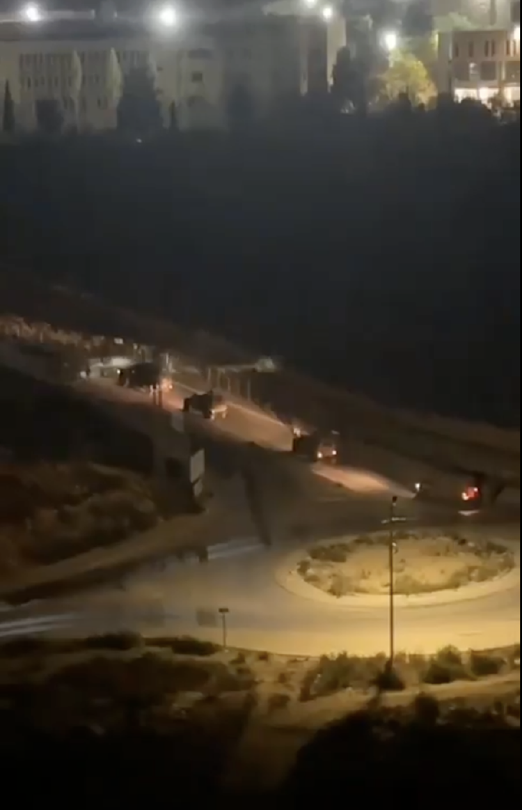 社交媒体上有视频片段显示,以色列军车驶入校内。 图源:半岛电视台报道所配社媒视频截图