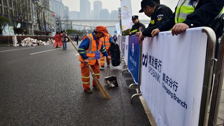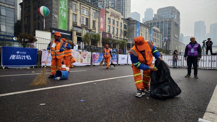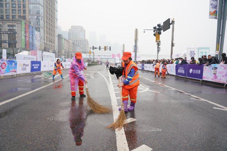 “我们从赛事开始前就做好了准备,一旦赛事结束,立即投入清洁工作。”江北区城市管理局相关负责人介绍,赛事期间江北区城市管理局将赛道划分为42个责任段,每段安排一名科级以上干部为组长、四名干部职工和两名作业公司管理人员,全面负责赛场保障工作,包括重要点位指引、道路清洁和文明劝导等。同时,根据赛道长度和区域重要性,每100至200米配备一名环卫工人,干部职工重点驻守补给站、起点和终点等关键区域,确保赛事顺利进行。
