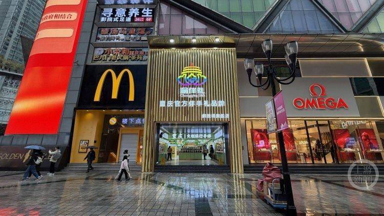 2025年12月31日,上游新闻来到了位于解放碑步行街旁的“渝伴礼”解放碑旗舰店。该店地处解放碑核心商圈黄金地段,毗邻人民解放纪念碑,店铺面积超1000平方米,凭借优越的地理位置和宽敞的空间布局,将成为商圈内极具辨识度的伴手礼热销地。