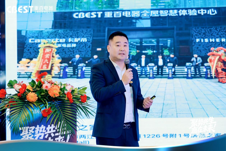 重百电器全屋体验中心营运总监李雪峰对项目进行了系统解读。他介绍,体验中心定位为“场景化体验式综合家电卖场”,汇聚美的、海尔、海信、格力、COLMO、卡萨帝、海信中央空调、三菱重工中央空调、日立中央空调、菲斯曼采暖、鲨鱼等上百家国内外一线品牌,依托规模化集采优势形成成本竞争力,并构建了“三位一体”服务保障体系:“商社精工”专注前端系统设计与安装维保;“重百小哥”提供覆盖重庆全域的到家售后、清洗与家政服务;门店专业团队持续提供支持。大会同时发布了针对设计渠道的“客源引流、产品研学、1+N服务管家”等合作权益,强化平台作为“连接器”的角色,实现用户、设计师与平台的三方共赢。