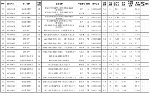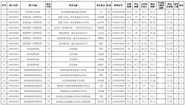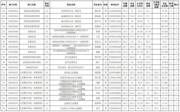 江苏省2024年度考试录用公务员(省级机关职位)面试已经结束。省级各招录机关根据报考者考试总成绩从高到低的顺序,按照与拟录用人数1∶1的比例,确定了进入体检环节的人选。现予以公告。
