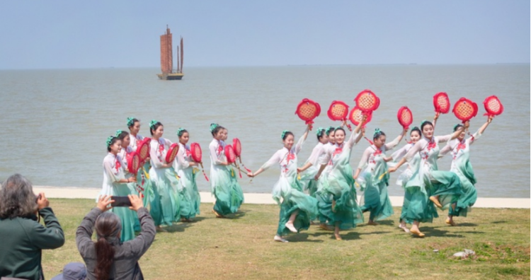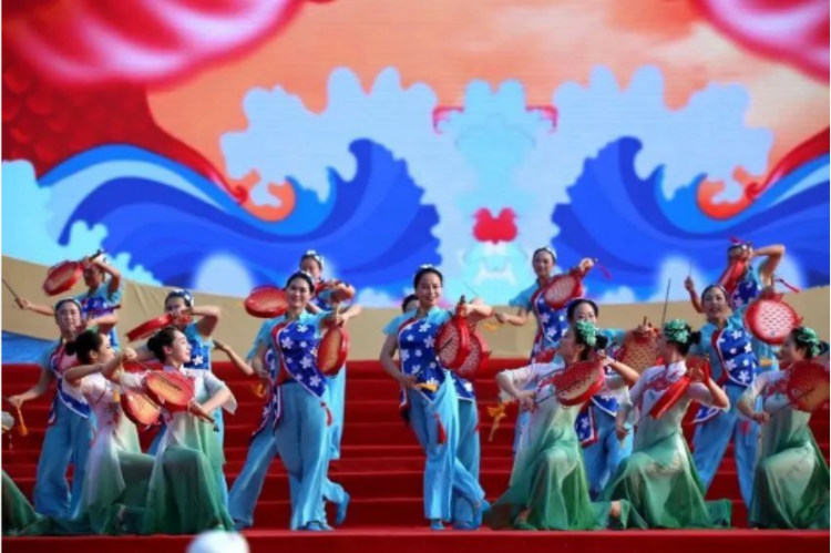在文旅方面,淮安举办“洪泽湖文化旅游博览会”等活动,推动非遗与旅游融合。将洪泽湖渔鼓等非遗代表性项目的音乐舞蹈与现代审美融合,创作《洪泽湖渔鼓舞》一系列文艺作品融入洪泽文旅,让洪泽渔鼓的魅力走出洪泽、走向全国。此外,洪泽区以数字赋能非遗宣传,采用线上“云推广”模式,在洪泽区渔人湾景区进行在线渔鼓教学展示,打造“非遗+互联网”新看点,将渔鼓舞的舞台从洪泽湖畔“搬”到了全国性网络大舞台。