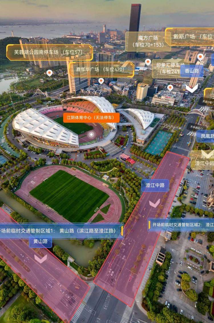 为方便广大球迷进场,确保现场秩序井然,江阴公安制作了比赛球场检票通道、周边道路及停车场的VR实景导览,指引球迷朋友,可直接点击标注的停车场进行导航,扫描下方二维码。