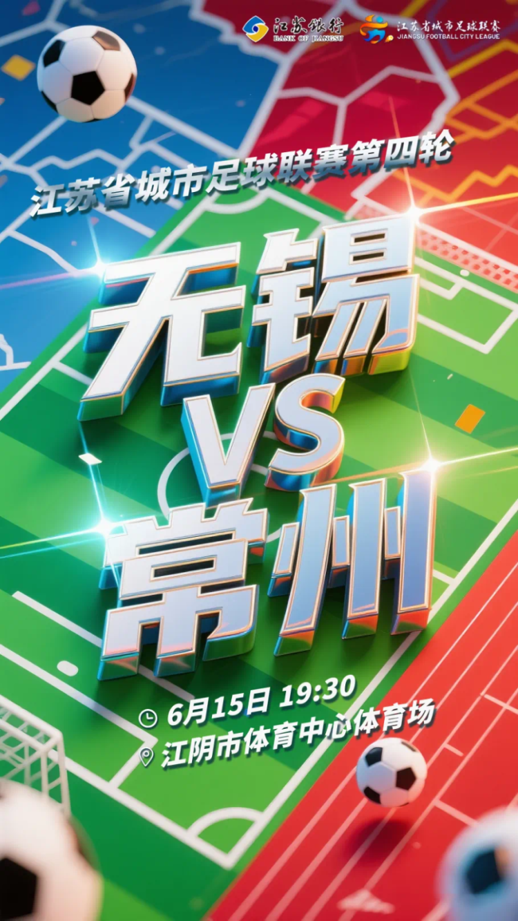 2025年全省城市足球联赛(无锡赛区)第四轮无锡对战常州的比赛将于2025年6月15日(周日)19:30在江阴市体育中心开赛,为保障比赛期间道路交通安全,将根据活动现场交通流量情况对体育中心周边相关路段实行临时交通管制,除活动保障车辆其他车辆限制通行。