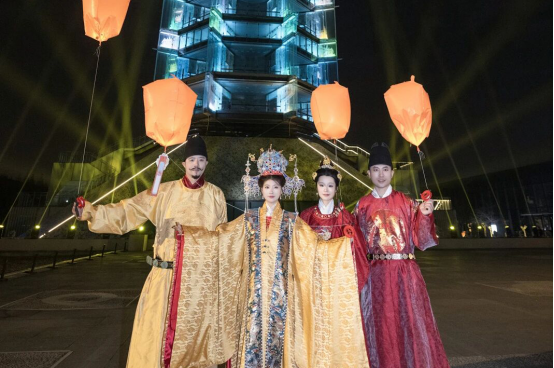 在大报恩寺遗址公园,“文韵新年·灯塔贺岁”活动以一场庄严的亮灯仪式拉开序幕。千年古塔首次为跨年夜专属点亮,成为城市年鉴中崭新一页。零点时分,塔身灯光与千盏电子孔明灯将交织成璀璨灯海,营造出“灯映古塔、光耀金陵”的壮观场景。活动现场,游客不仅可夜间登塔俯瞰城景,还能与身着明代服饰的历史人物NPC互动邂逅,在古今交融中感受南京独有的仪式感。