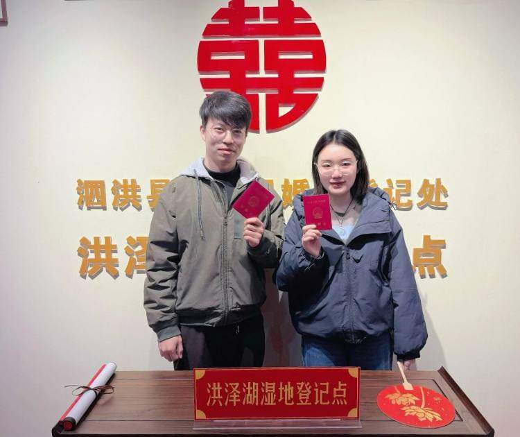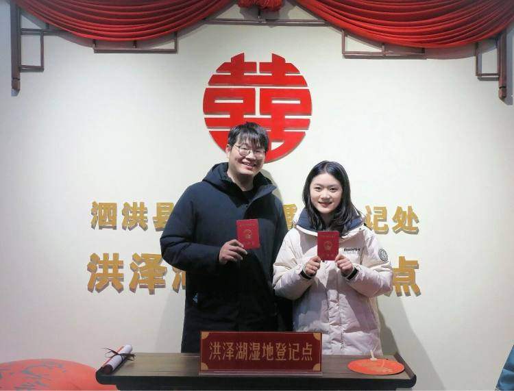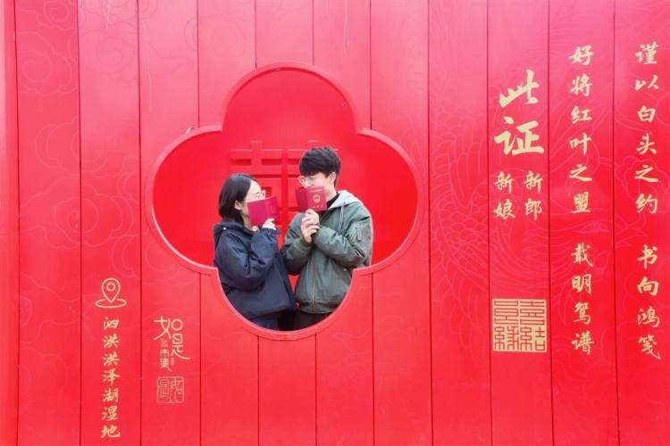 元旦佳节之际,泗洪洪泽湖湿地景区联合泗洪县民政局推出暖心服务。新人无需预约,即可在洪泽湖湿地登记点办理结婚登记业务。