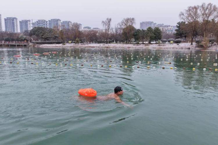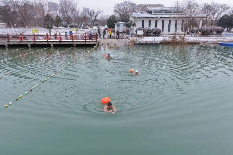在泗洪,雪后寒意袭人,冬泳爱好者却无惧凛冽,纵身跃入水中,以活力开启新一年的美好生活。