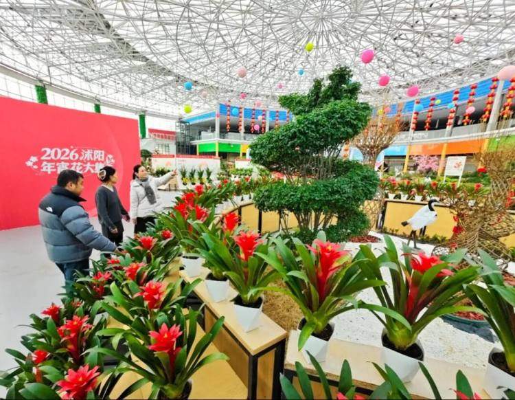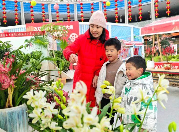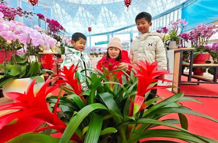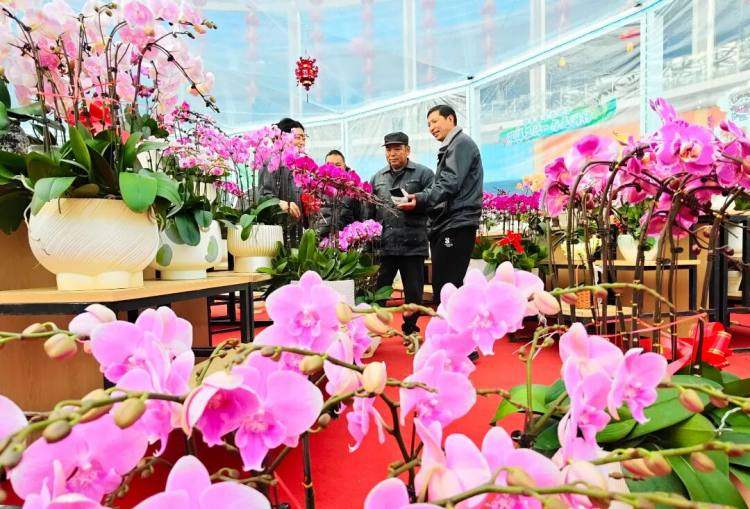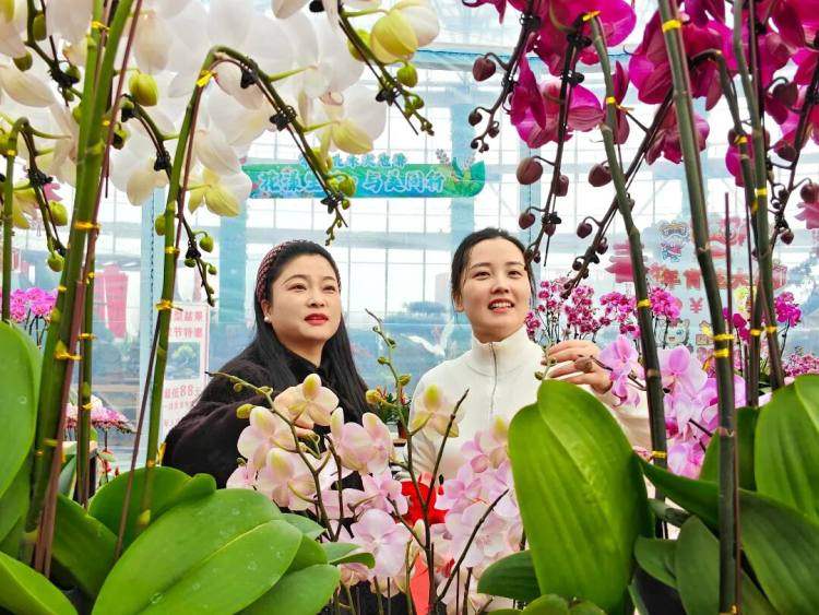 在沭阳县华东花木大世界,年宵花大集热闹开市。暖意融融的智能温室大棚内,蝴蝶兰、大花蕙兰、宝莲灯等近百个品种的花卉竞相绽放,众多市民游客驻足观赏、选购心仪花卉,提前体验满满年味。