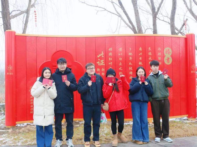 在景区登记点周边,红色灯笼、喜庆囍字,还有各种民俗装饰,为前来领证的新人营造出了浪漫喜庆的氛围,助力一对对有情人甜蜜开启2026新生活。