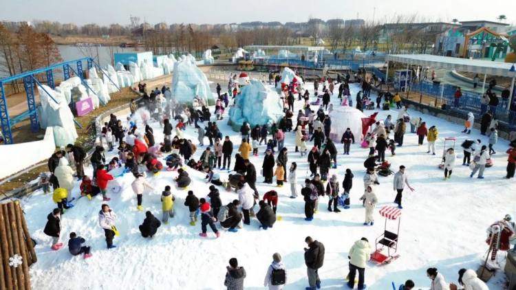 元旦假期第一天,宿城区季高·牛角村MOMO乐园人头攒动、热闹非凡。家长们陪着孩子在冰面上堆雪人、拉雪橇、打雪仗,乐园精心打造的“MOMO冰雪秘境”里充满了欢声笑语。