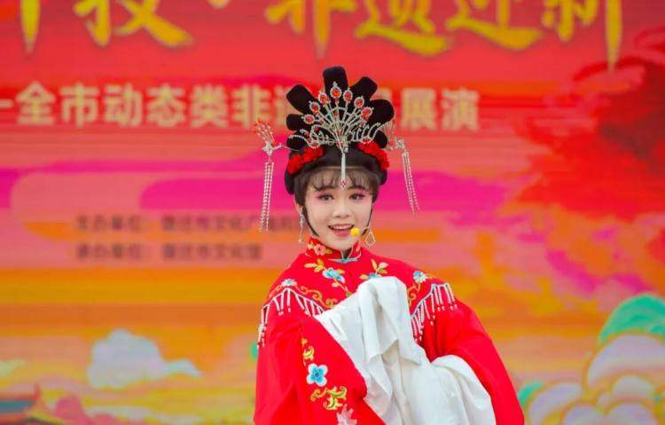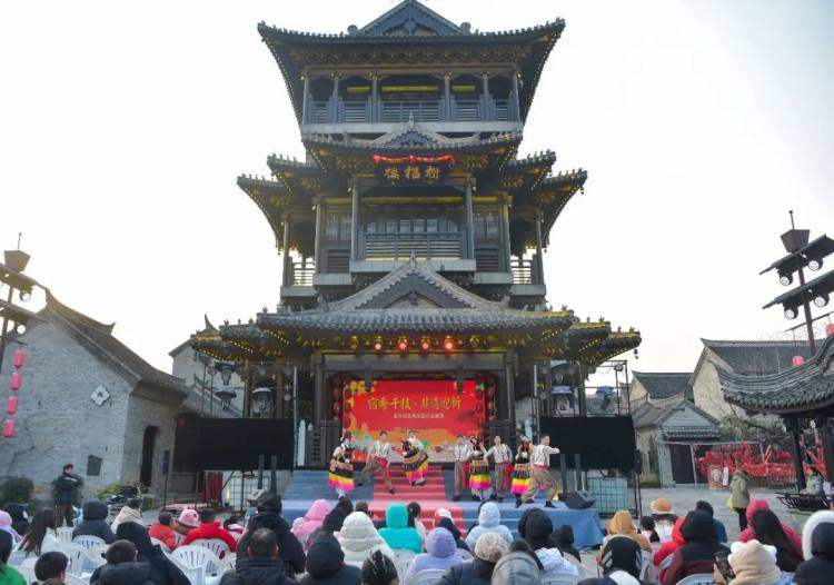 下午,在市区新盛街祈福楼举办的“宿秀千技·非遗迎新”——动态类非遗作品展演活动热闹启幕。苏北大鼓、淮海戏、相声等精彩非遗艺术轮番登场展演,现场市民在多姿多彩的文艺表演中欢庆新年的到来。