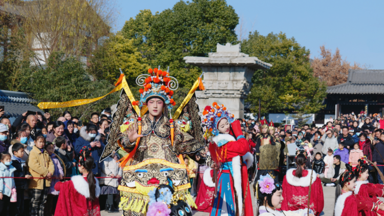 元旦当天上午,项王故里景区限时免费入园,为市民游客送福利。景区内,精彩演艺、祈福打卡、NPC互动等精彩活动让现场游客嗨翻天。