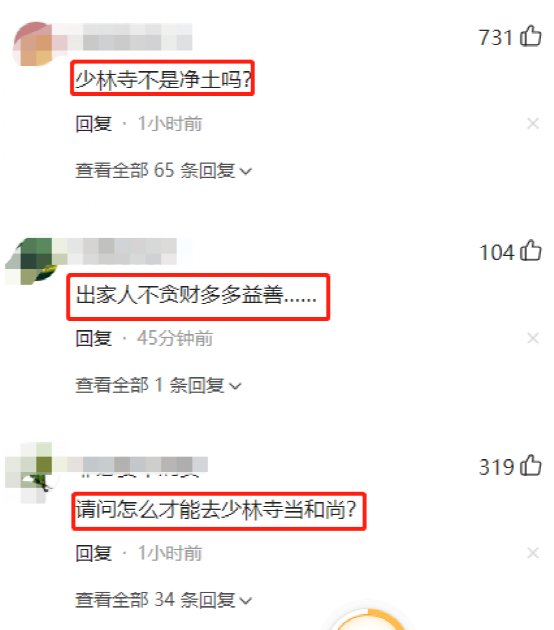 对于少林寺进军房地产,网友一片哗然:“少林寺不是净土吗”“方丈成老板,这可以吗”“这世道变化快啊,少林寺都出山了”……。还有的网友称“请问怎么才能去少林寺当和尚?”。
