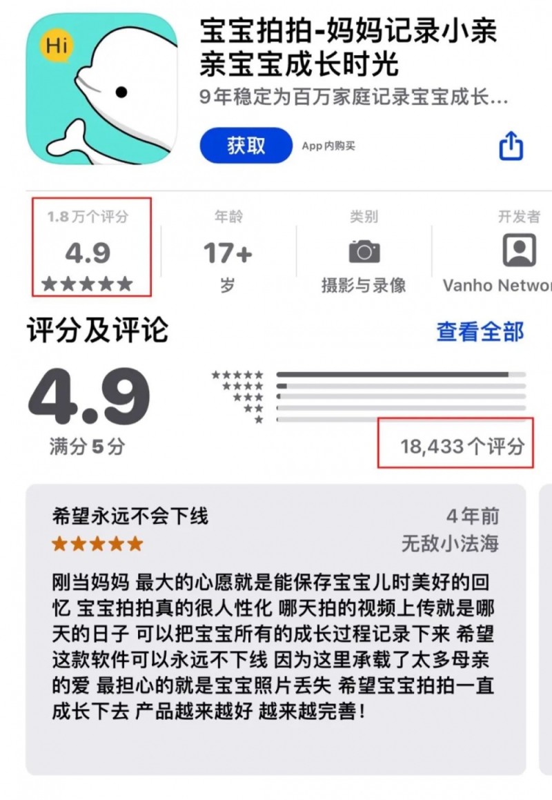 据悉,杭州万核主要运营着“宝宝拍拍”App,公开资料显示,“宝宝拍拍”是一款立足于影像的产生、管理和共享的亲子成长记录工具。在苹果AppStore中,这款软件评分4.9(满分5分),共有1.8万余个评分,并在3天前刚更新了版本。