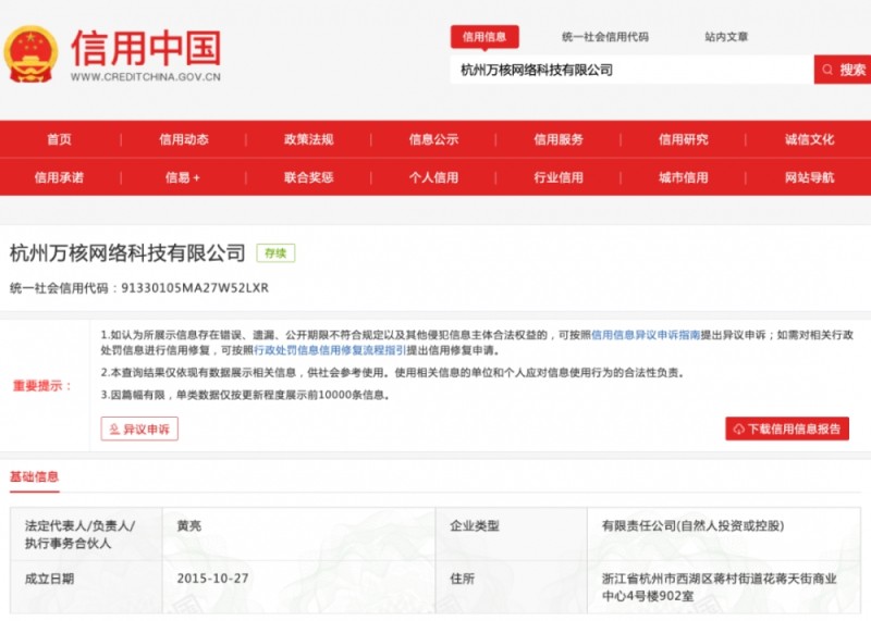 信用中国显示,杭州万核网络科技有限公司(下称“杭州万核”)因偷逃税款等行为被杭州市税务局罚款约17.27万元。