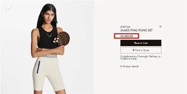 小编在LV中国官网上看到,确有一款“JAMES 乒乓套装”,包括一副球拍及球拍套,四颗乒乓球及球套,加印花图案,售价18300元。
