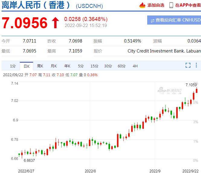 原标题:离岸美元兑人民币汇率盘中突破7.1 市场人士预计美元上涨趋势或延续