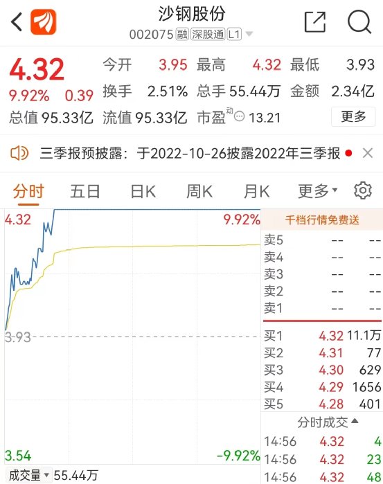 由于牵涉多家上市公司,此次资产抛售,在二级市场上引起大动作。接盘方沙钢集团旗下的沙钢股份17日早间即涨停,而南钢联合持股的上海钢联当日也上涨4.01%。