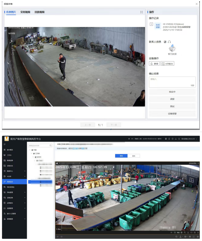 阳光财险重点关注物流仓储行业的存货安全、设备运行隐患、人员管理三类核心痛点,构建高效风控体系,全方位保障仓储运营安全:针对存货堆码倾斜倒塌、不明人员触碰、人工盘点失误等常见问题,部署智能安防摄像头,通过高清成像与物品识别技术,实时监控存货状态,自动识别异常堆码、移动等风险并及时预警,同时形成可视化库存台账,辅助规范存货管理,减少人为失误;针对电机、线路、轴承等关键部件等物流设备运行异常过热引发火灾或设备故障停机的问题,传统人工巡检难以实时覆盖,部署基于红外热成像技术的智能摄像头,24小时不间断监测设备温度变化,一旦超过安全阈值立即报警;针对人员误入高价值货物区、设备操作区等禁入区域、违规攀爬货架、未按规定佩戴安全装备以及夜间光线昏暗等引发安全事故的问题,融合智能安防、红外夜视及AI技术,在明亮及暗光全场景精准捕捉人员活动轨迹,消除监控盲区,自动识别各类违规行为并发出警示,保障仓储财产和人员安全。