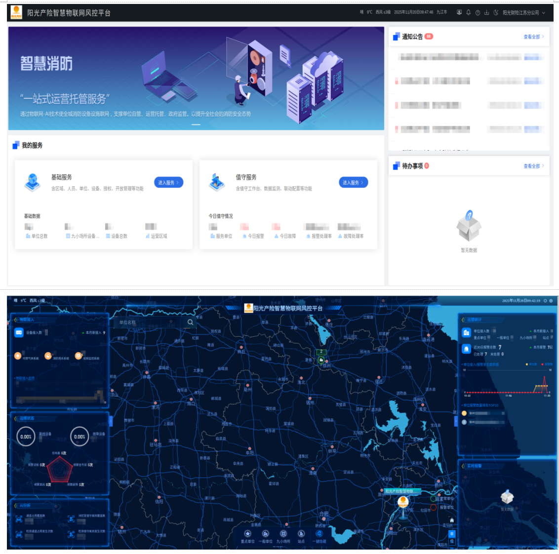 阳光财险的物联网风控服务不局限于简单的设备安装,还建立了智慧物联网风控平台,通过平台整合、管理各个监测设备,掌握运行状态,并向客户方开放服务查询端口,点对点向关联企业及安全人员发出预警。如徐州某酒店管理集团地下控制室,当可燃气体浓度达到预警阈值时,既触发本地声光报警,又同步向酒店安保中心推送预警。此外还可联动消防系统,当停车场电车充电区域发生火情自动触发消防系统报警并启动灭火动作,快速控制火势,还预留了外部接口,可与当地应急管理、消防救援等部门监管系统共享数据,同步联动政府或社会救援力量。