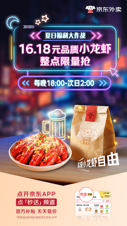 京东外卖以“实在”出击,精准解决“一人食”用户的夏日嘬虾痛点,用无套路、真补贴的一口价品质小龙虾,让夏日美味变得简单纯粹,让商家的增长健康可持续。品质外卖,上京东。进入京东App首页“秒送”频道,每晚锁定下单,轻松解锁小龙虾自由。