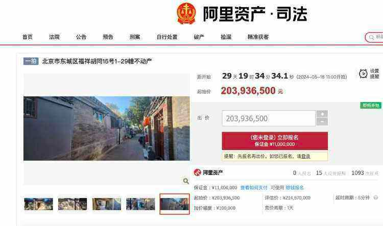 北京四合院司法拍卖最高成交价为1.5676亿元