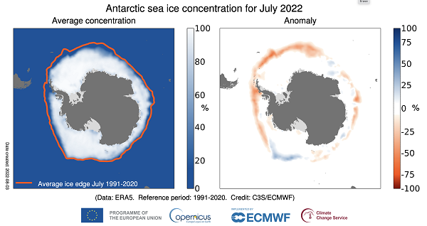 图说:2022年7月,南极海冰面积消融情况 来源:世界气象组织官方网站(下同)