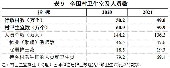 截至2021年年底,全国平均每个村卫生室年诊疗量仅有2239人次,这意味着每天仅有6个患者就诊。