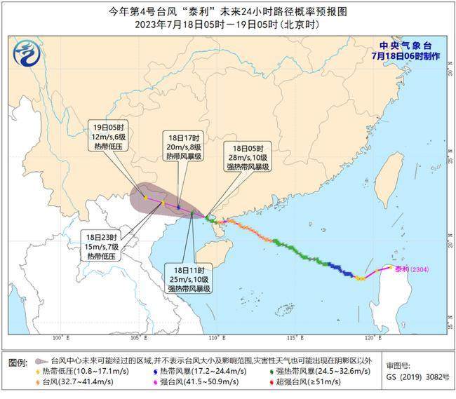 7月18日06时,中央气象台发布台风黄色预警和暴雨黄色预警,台风“泰利”今晨在广西北海二次登陆,强度逐渐减弱,6省区有大到暴雨,广西云南部分地区有大暴雨。