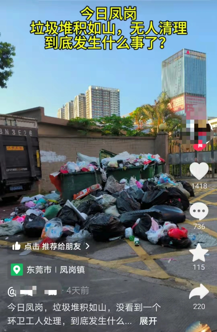广东东莞凤岗镇因环卫工薪酬纠纷致垃圾无人清,急招日结工?当地回应
