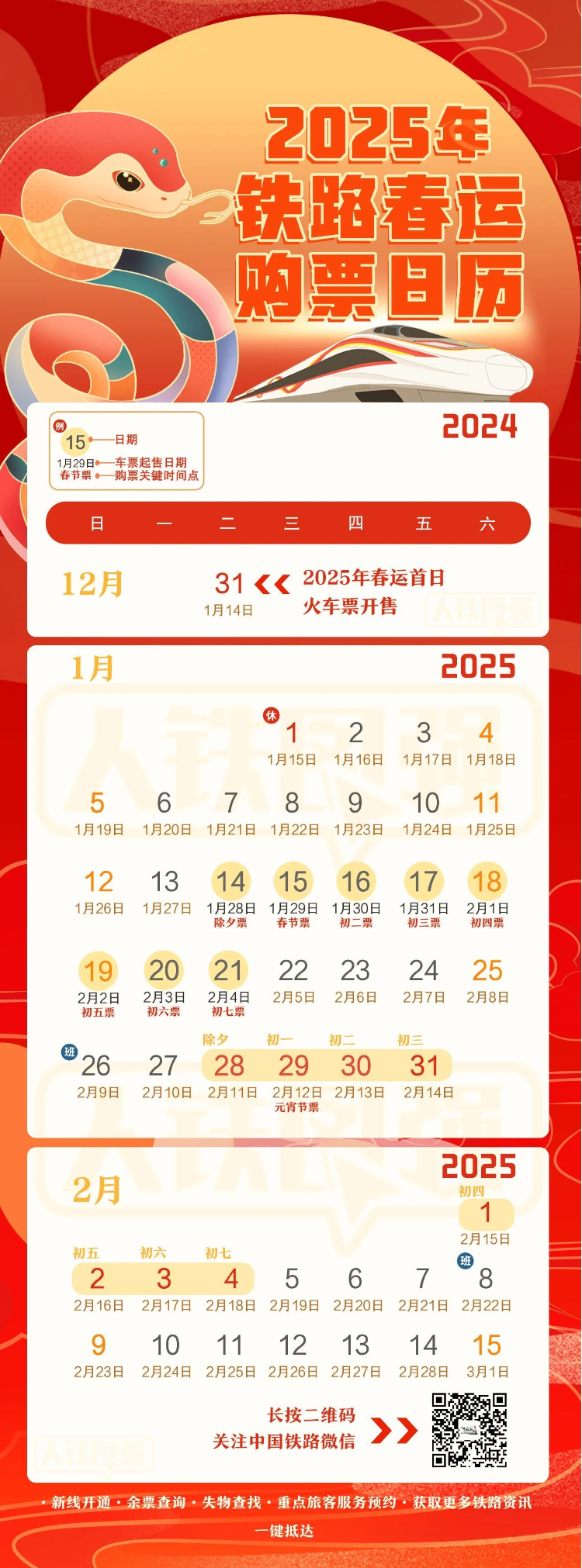 “2025铁路春运购票日历”请收藏好↓