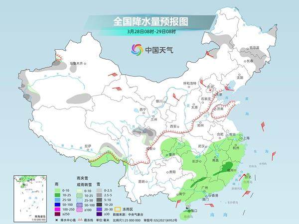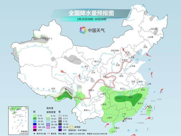 过程最低气温将出现在3月29日夜间至30日凌晨,最低温度0℃线将位于华北南部至秦岭一带。