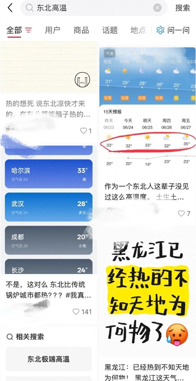 社交平台上关于东北地区高温的发文。图/社交平台截图