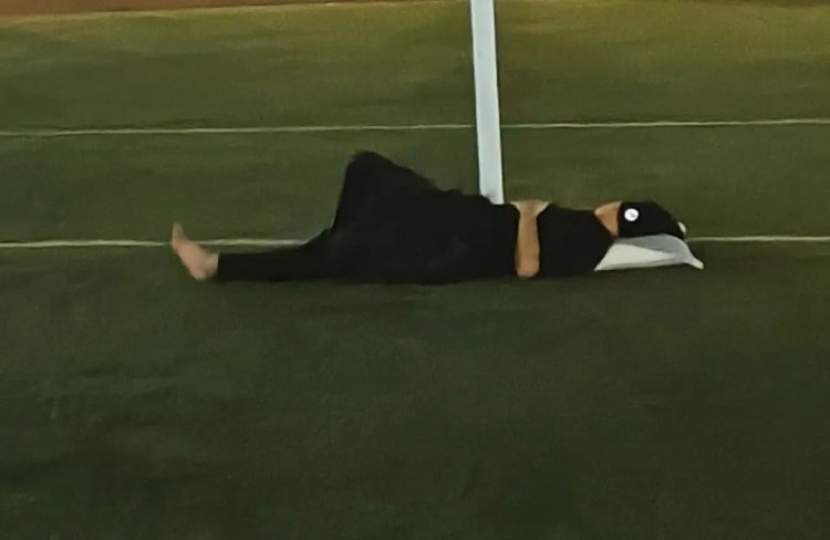 学生在操场打地铺睡觉。图/社交平台