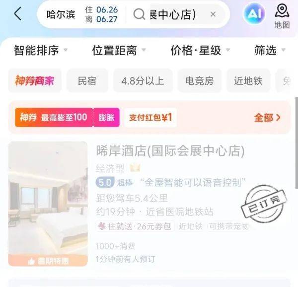 东北林业大学周边已被订完的酒店。图/受访者提供