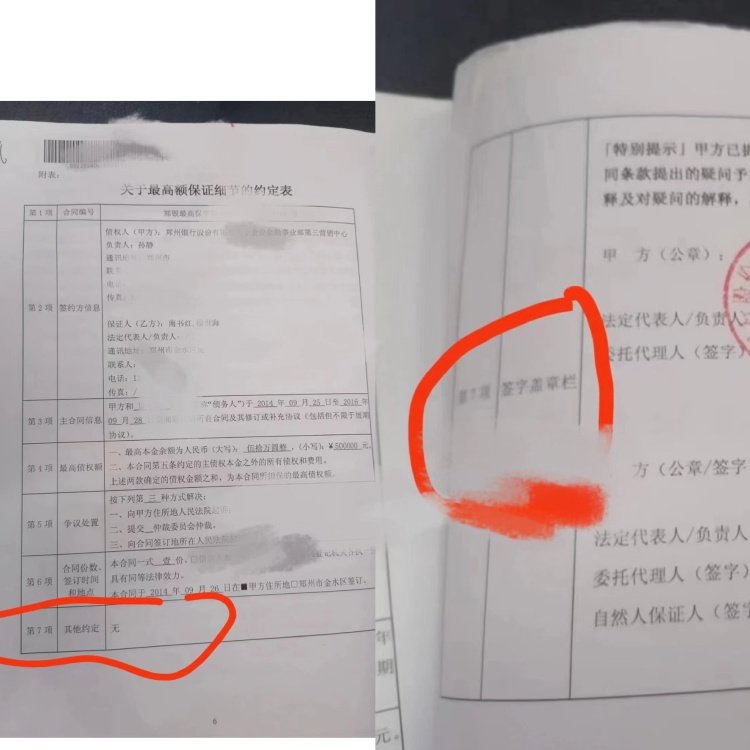 郑州银行在庭审时辩称,“关于保证合同中两项第七项重复问题,保证合同版本系制式合同,是从银行系统中自动生成后打印出来,Word格式发生错误,导致两个第七项与第二页分层。这个属于字面技术操作错误问题,内容是没有问题的。这个可以根据合同的页码和合同上端的编码看出都是一份连贯的合同,不存在错误的现象。”该说法被郑州中院采信。