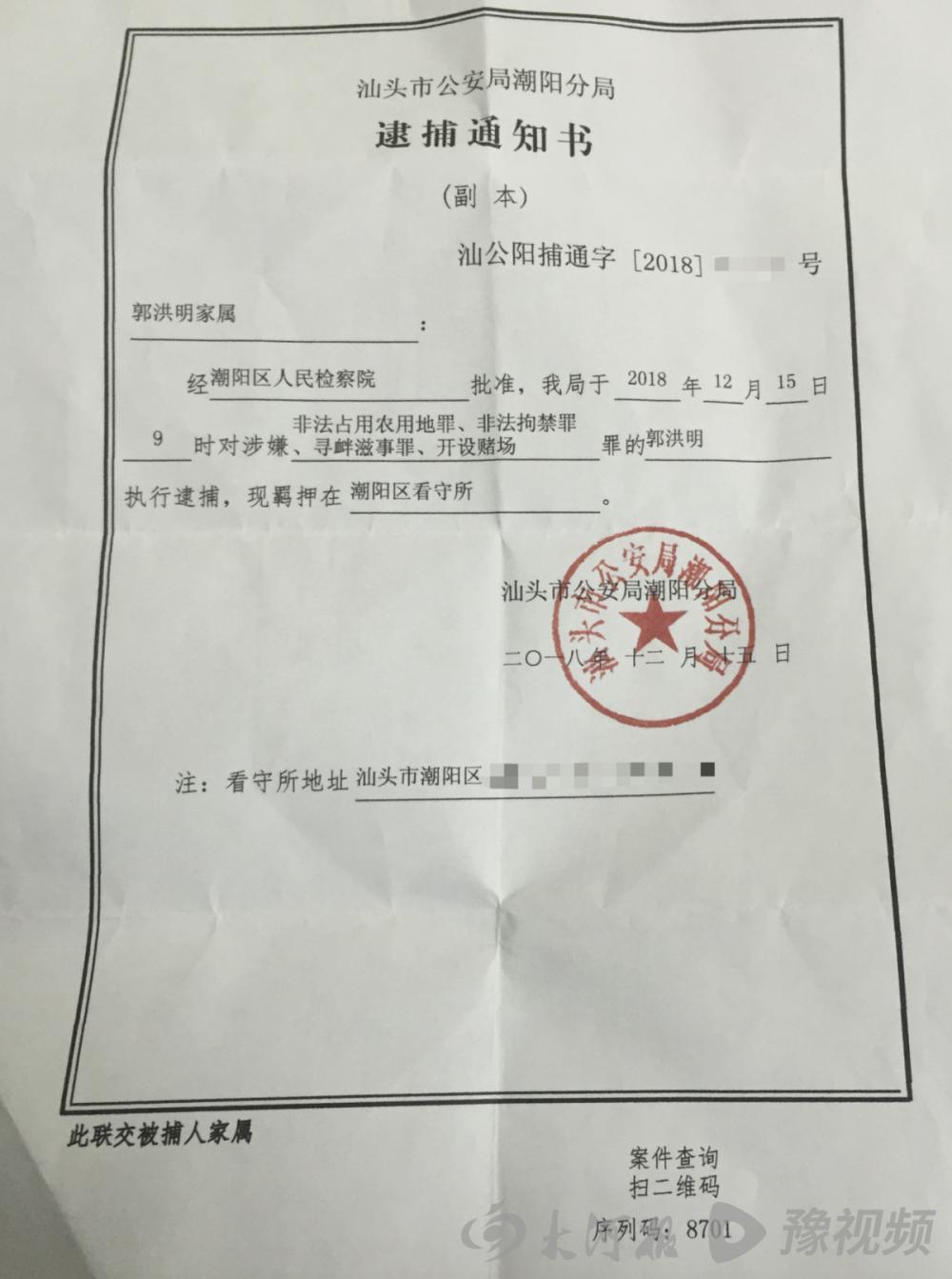 2018年12月15日,60岁的广东汕头人郭洪明因涉罪被羁押在汕头市潮阳区看守所。