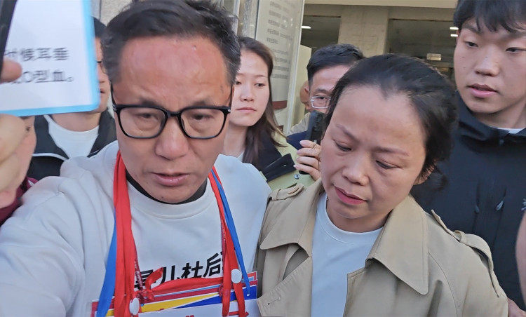 被抢孩子姜甲儒的母亲乔守芬庭审结束后走出法庭后晕倒送医。摄影/上游新闻记者 崔涛