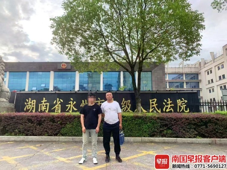 6月18日,阿军与父亲在永州市中级人民法院参加庭审。