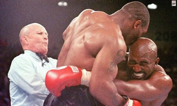 与霍利菲尔德的比赛中,咬对方的耳朵。