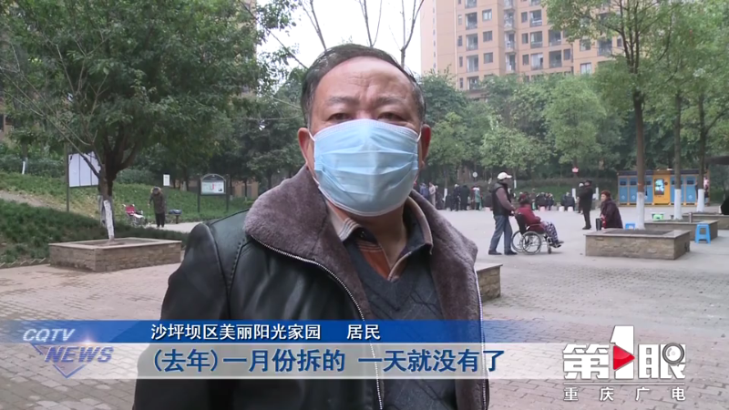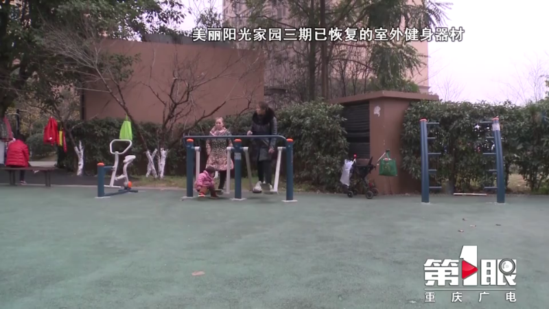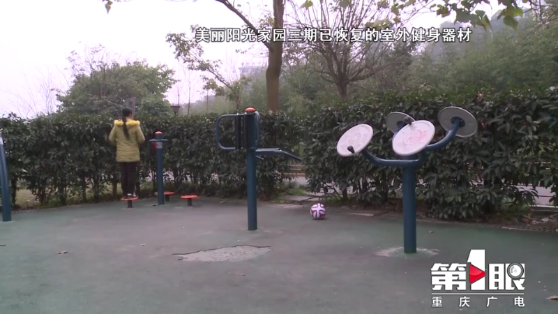 第1眼-重庆广电消息,沙坪坝美丽阳光家园的居民反映,他们小区的室外健身器材一年前被人拆除,之后就再也没有恢复了,很多居民的健身锻炼成了一个难题。