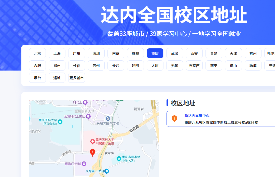 “这里是‘新达内教育’在重庆的校区。‘新达内教育’就是之前的‘达内教育’,他们是一家从事IT培训的知名全国连锁机构,而且有20多年历史了。”涂先生说。上游新闻记者从“新达内教育”官网上看到,该机构在重庆确实有校区,地址正是涂先生上课的地点。