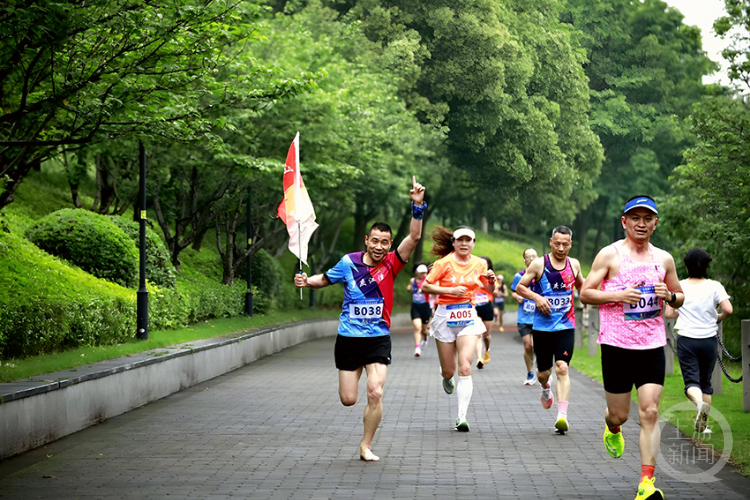 4月26日,江津区“行走大运河”全民健身活动在重庆市江津区滨江公园活力启幕,五百余名运动爱好者在绿意葱茏的健身步道上奋勇向前。