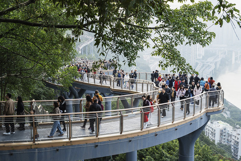 《悬空栈桥》组照二。上游新闻签约摄影师 廖禾 摄于重庆半山崖线鹅岭栈桥
