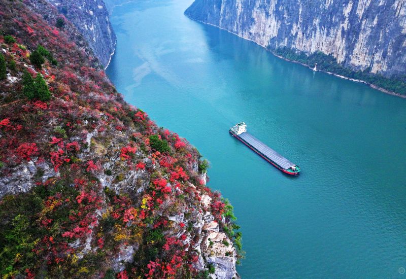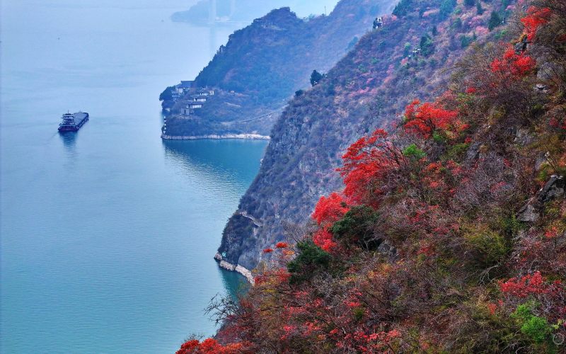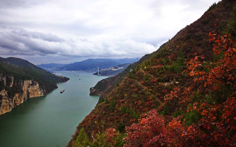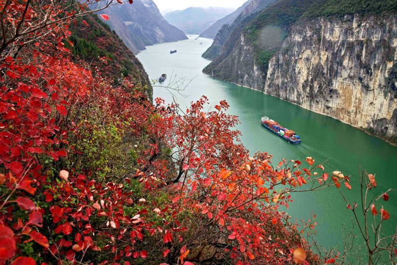 《漫山红叶映峡江》组照六。上游新闻签约摄影师 姚勇 摄于重庆市奉节县瞿塘峡