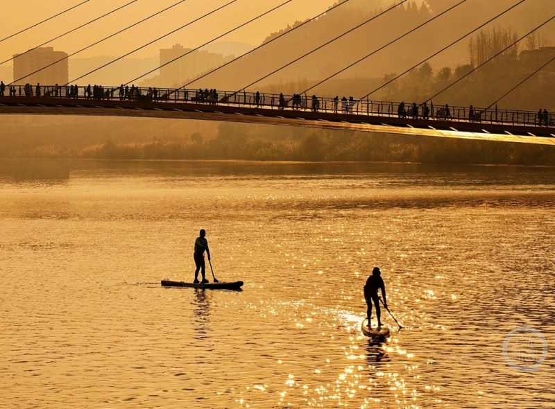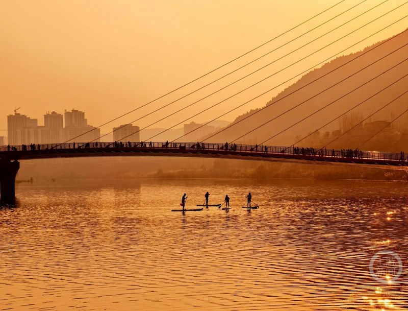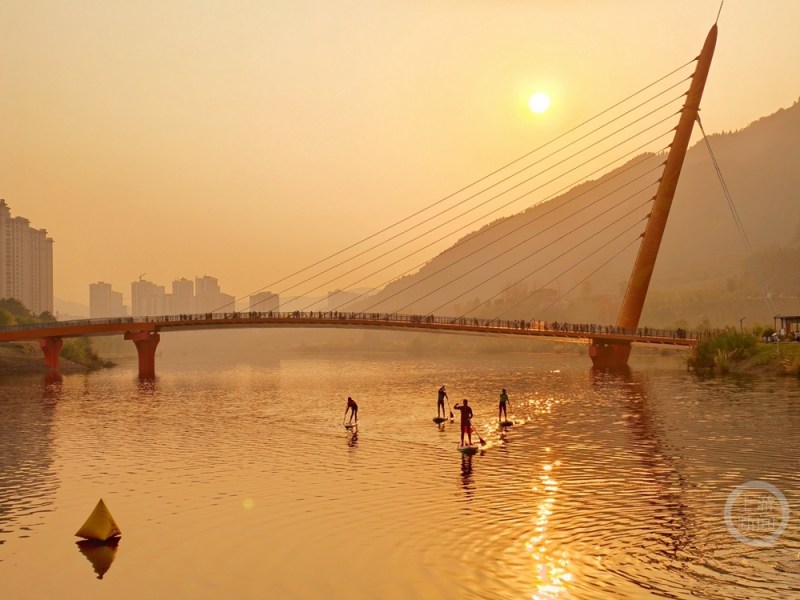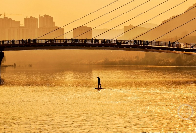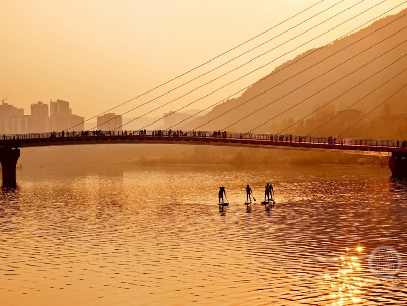 《夕阳桥影下的桨板》组照二。上游拍客 王学炳 摄于重庆市开州区汉丰湖