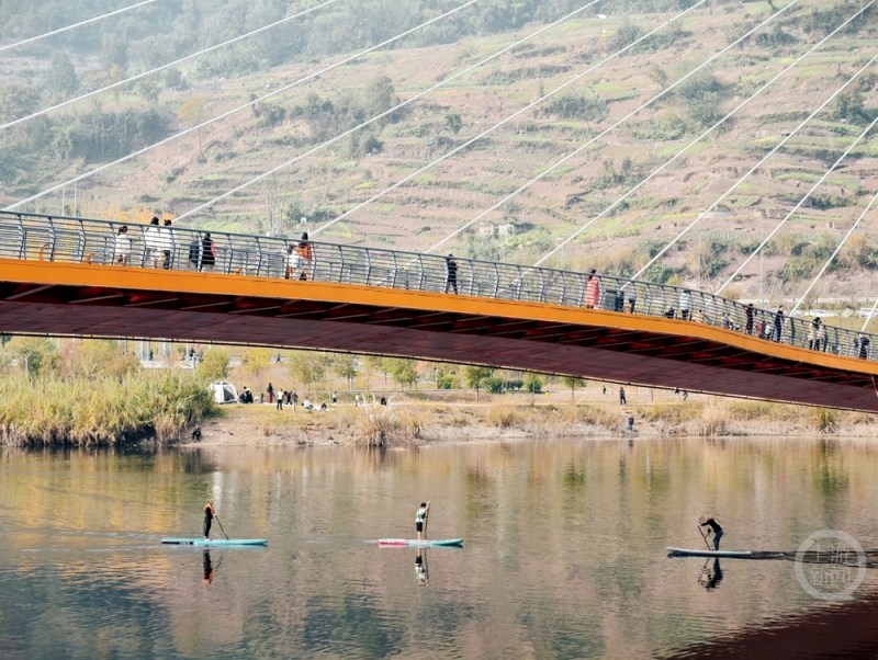 《夕阳桥影下的桨板》组照一。上游拍客 王学炳 摄于重庆市开州区汉丰湖