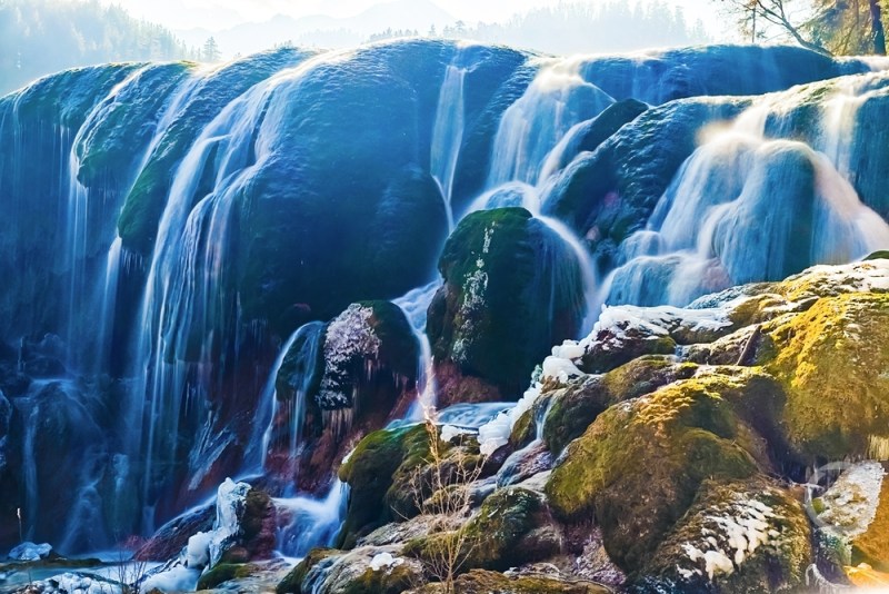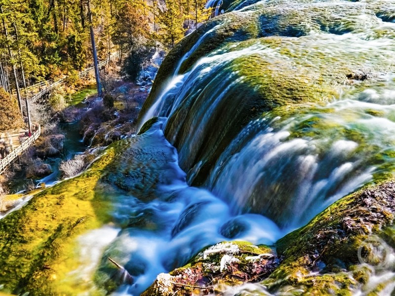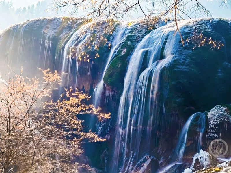 《打卡珍珠滩瀑布》组照二。上游新闻签约摄影师 张云霞 摄于四川省阿坝藏族羌族自治州九寨沟