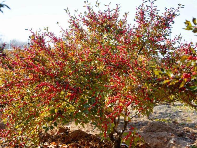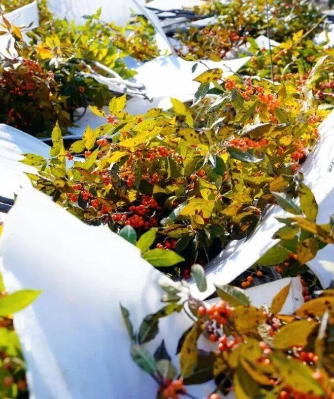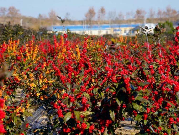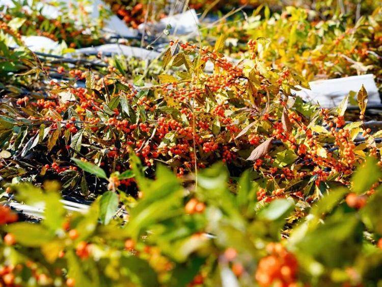 位于桥头镇的七彩生物科技园区里,北美冬青已进入最佳观赏期。